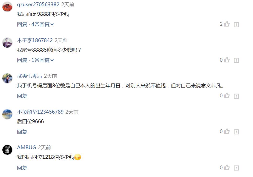 这个拍卖价格一出,瞬间引发了众多网友热议,不少网友调侃自己的连号能值多少钱,更有人表示自己的手机号后8位是本人生日,对别人来说不值钱,但对自己来手意义非凡。那么问题来了,你的手机号对你有什么特殊的价值吗?