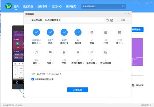 在连接完成后,就可以开始数据备份啦。这次演示依然是用有线方式备份,因为有线比无线更稳定。
